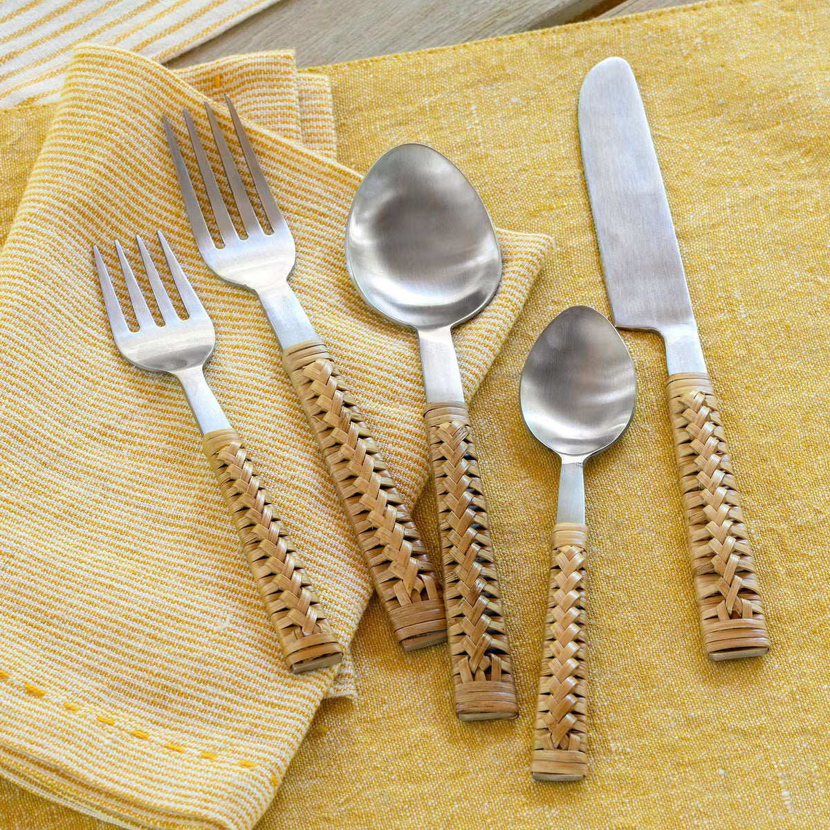 Woven Bamboo Handle Cutlery Set