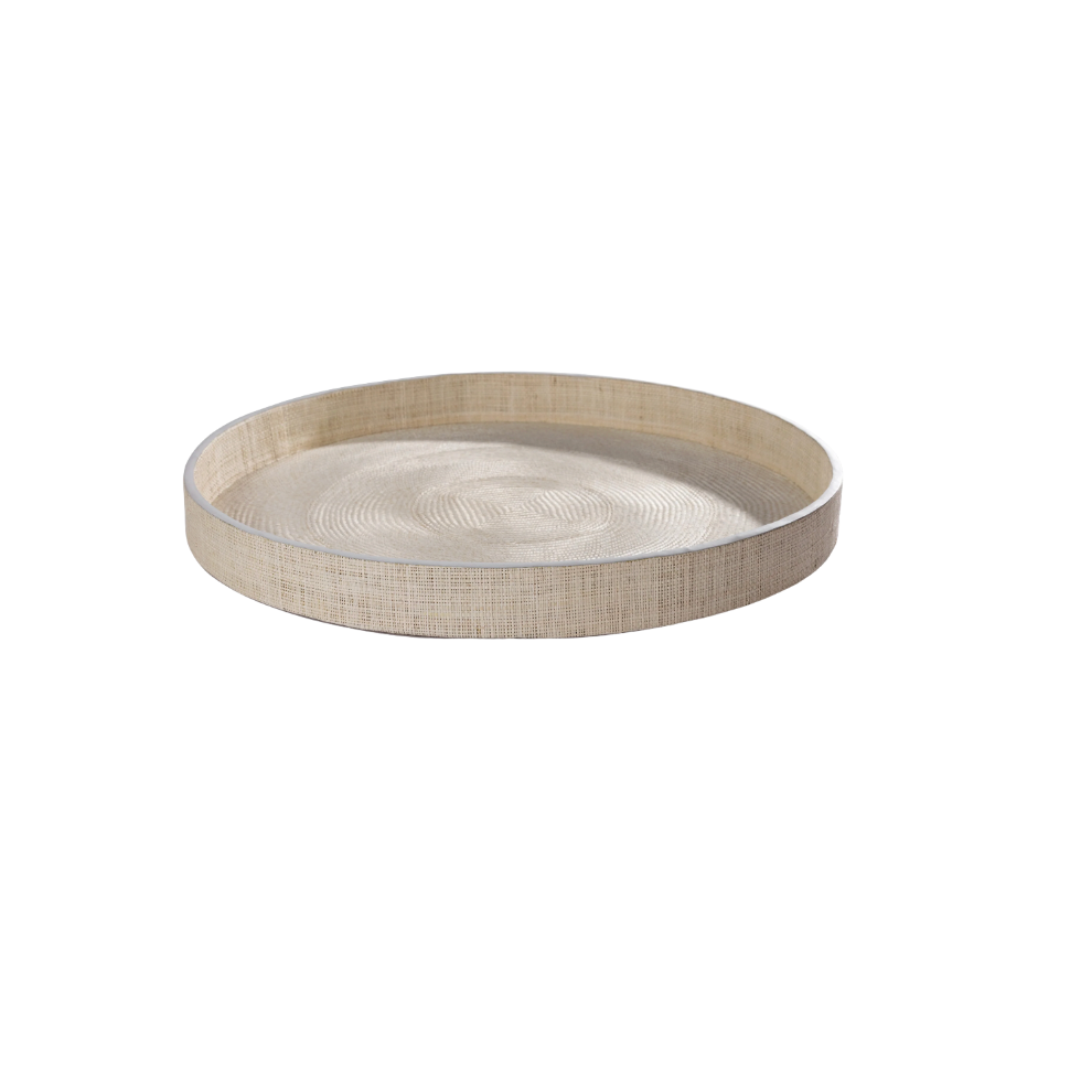 Atelier Natural Fiber Raffia Round Serving Tray with Leather Trim