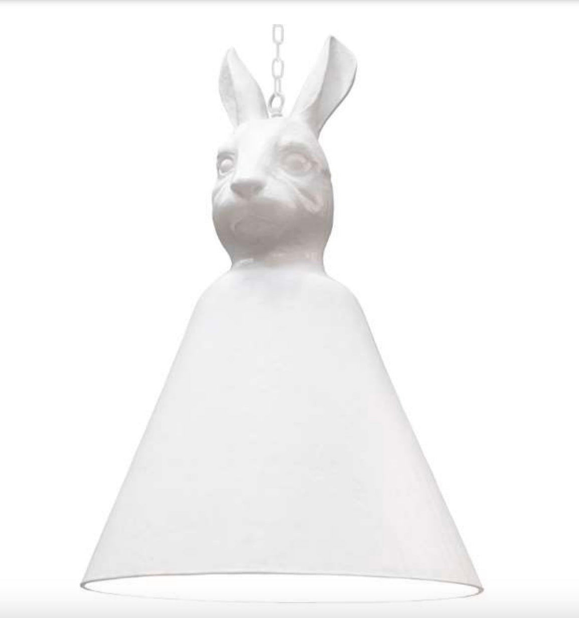 frost white cast resin chandelier with rabbit detail