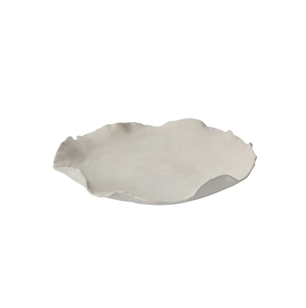 Minimalist & understated yet beautiful in its organic, artful look, the low, shallow Imagine Bowl creates impact in home decor with its large size but delicate appearance. Made from thin ceramic with a warm white matte finish, this piece with its irregular shaped rim is a stunning base for styling with bowl fillers or even serving food while bringing dimension & style to any surface.