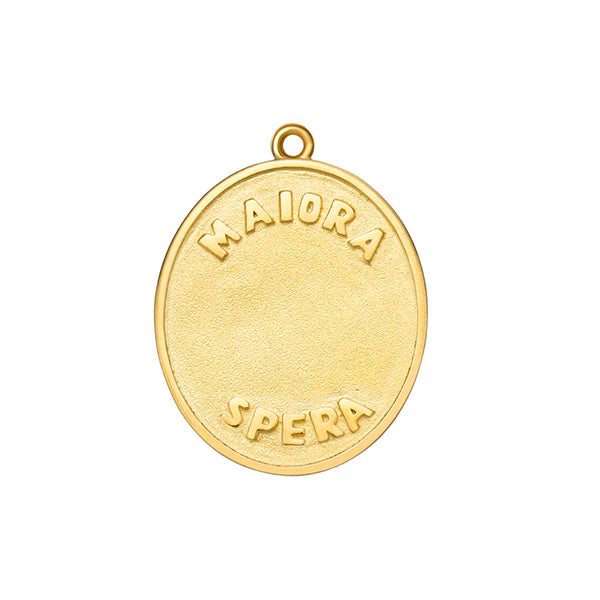 The flying pig is a symbol for achieving the impossible. The flying pig is surrounded by two oval details, enhancing the meaning of the symbol to dream big! The Latin phrase "Maiora Spera" is on the back which translates to "dream bigger." Wear this pendant as a reminder to not limit your life by outside programming or negative beliefs.