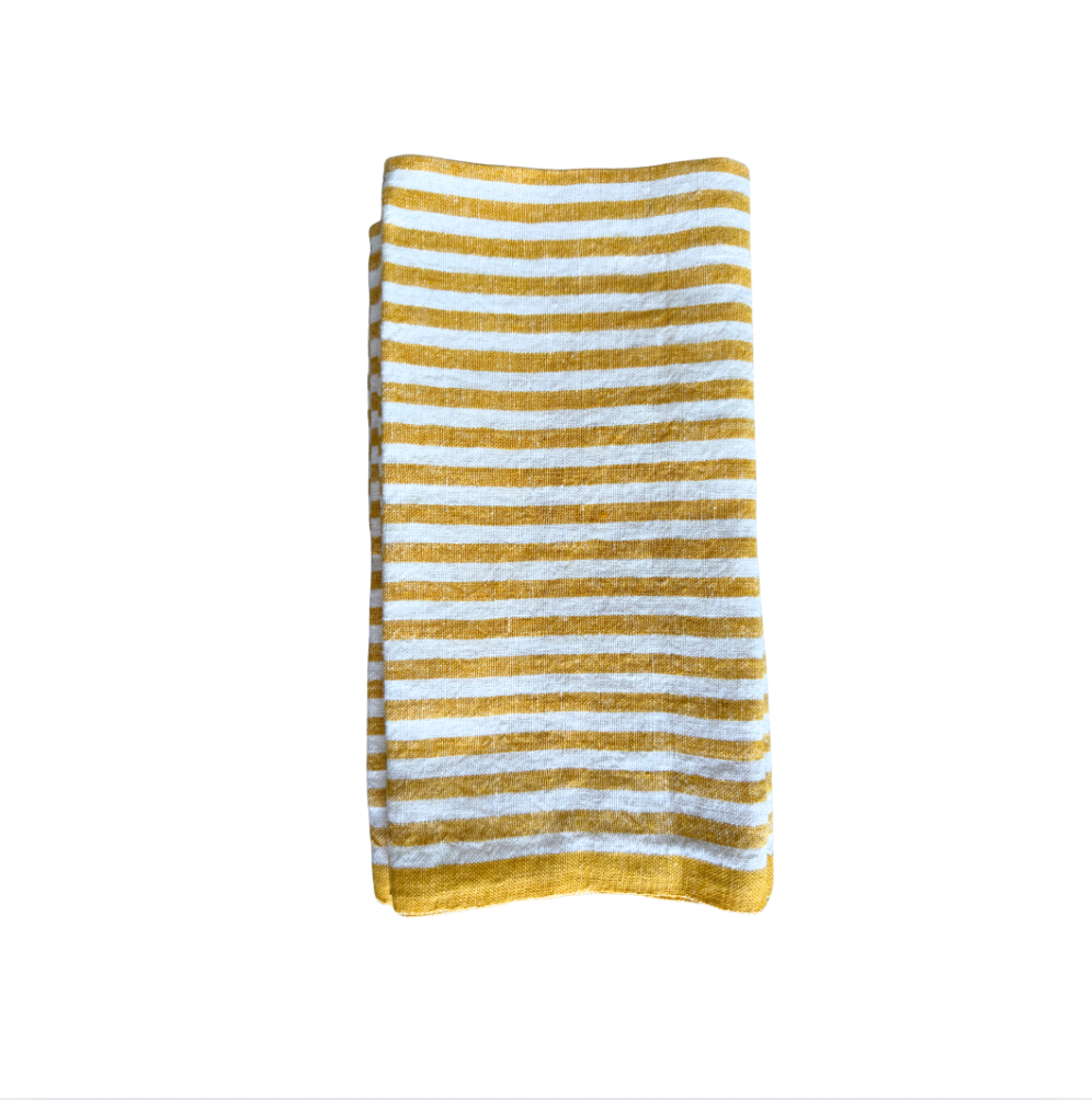 Yellow Stripe Linen Napkin Set of 4
